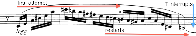 However this transcript presentation is less meaningful for those who do not read music and does not necessarily draw out the interaction features that a conversation analyst would be interested in. In applying the rules of conversation analysis to musical utterances, our notation needs to be comprehensible to those who are used to working with transcripts, whilst being able to capture the interactionally relevant aspects of music production.
